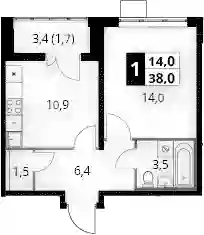 10 868 880 ₽1-к.квартира, 34.3 м², 18 эт.