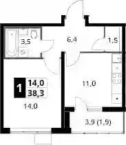 13 423 230 ₽1-к.квартира, 39.7 м², 6 эт.