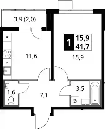 1-к.квартира, 39.7 м², 6 эт. в ЖК 1-й Южный Корпус 1.3