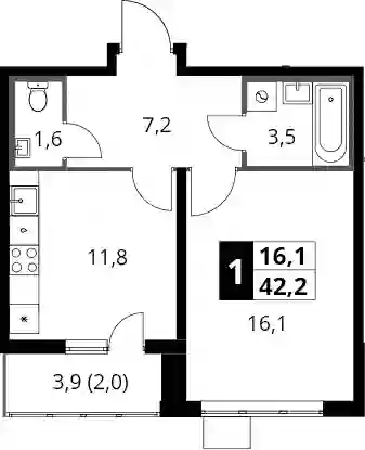 12 043 616 ₽1-к.квартира, 39.7 м², 10 эт.