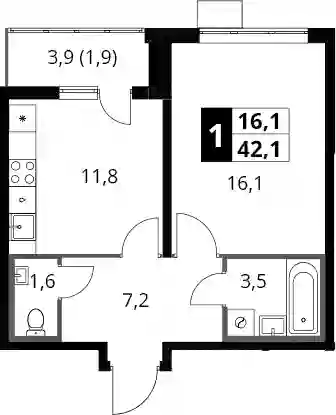 15 575 520 ₽2-к.квартира, 42.5 м², 11 эт.