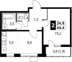 11 004 010 ₽2-к.квартира, 43.9 м², 15 эт.