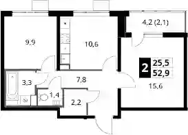 12 420 550 ₽2-к.квартира, 51.2 м², 6 эт.