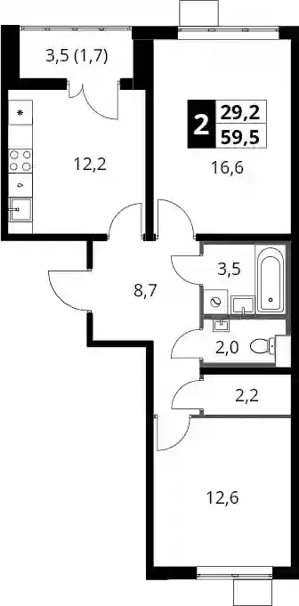 12 505 948 ₽2-к.квартира, 57.9 м², 16 эт.