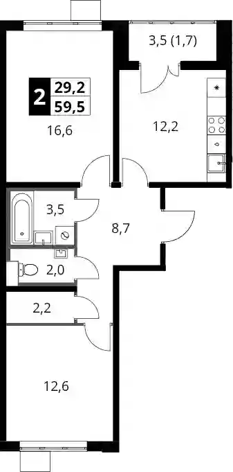 12 557 118 ₽2-к.квартира, 57.9 м², 18 эт.
