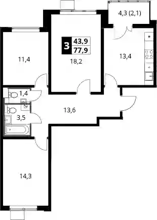18 188 518 ₽3-к.квартира, 81.3 м², 3 эт.