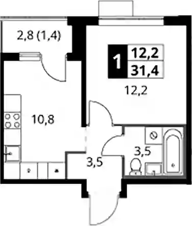 10 120 403 ₽1-к.квартира, 32.3 м², 15 эт.