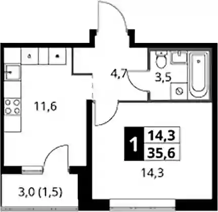 13 006 140 ₽1-к.квартира, 34.3 м², 11 эт.