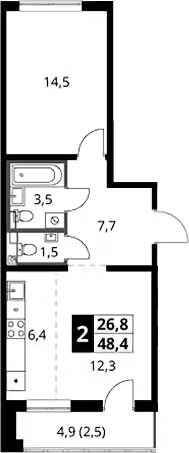 12 468 719 ₽2-к.квартира, 42.5 м², 14 эт.