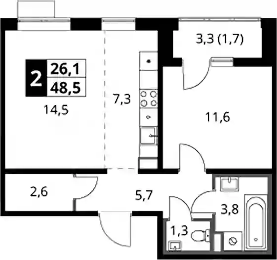 14 485 695 ₽2-к.квартира, 50.9 м², 15 эт.