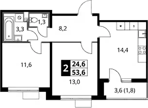 14 416 288 ₽2-к.квартира, 50.3 м², 5 эт.