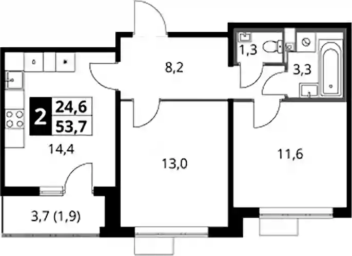 16 573 120 ₽2-к.квартира, 51.8 м², 14 эт.