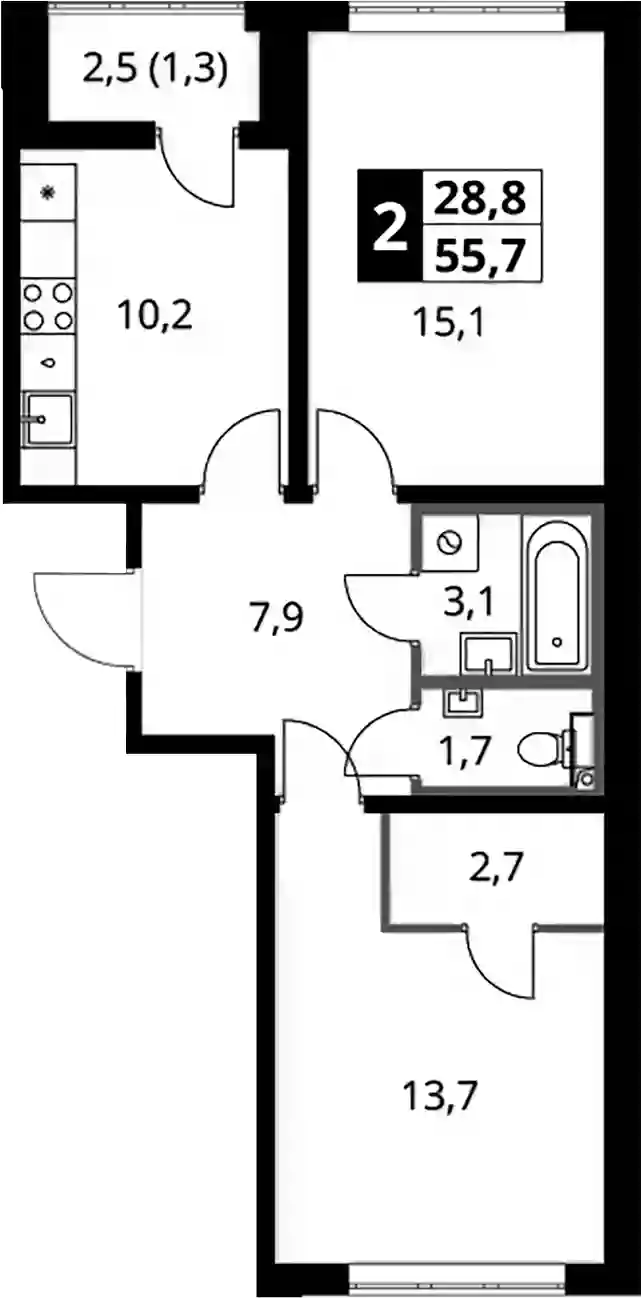 14 142 555 ₽2-к.квартира, 57.8 м², 15 эт.