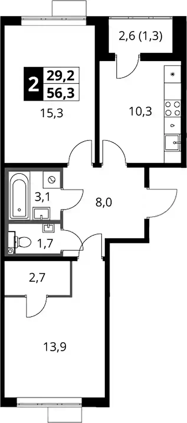 14 157 518 ₽2-к.квартира, 56.4 м², 15 эт.