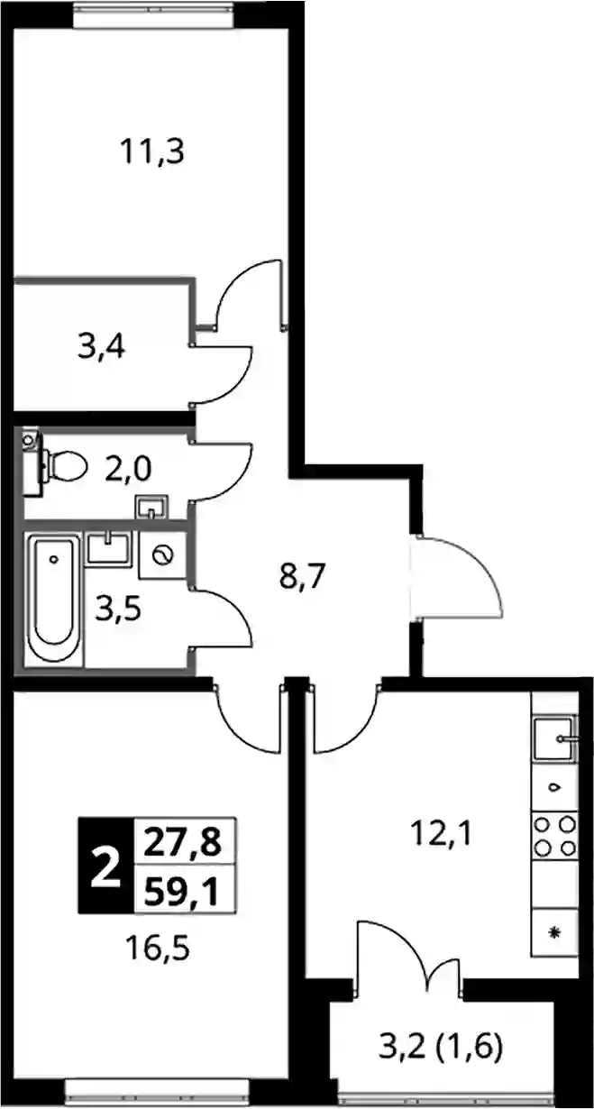 12 886 072 ₽2-к.квартира, 57 м², 16 эт.