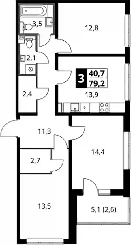 18 188 518 ₽3-к.квартира, 81.3 м², 3 эт.