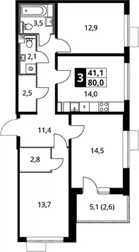 18 188 518 ₽3-к.квартира, 81.3 м², 3 эт.