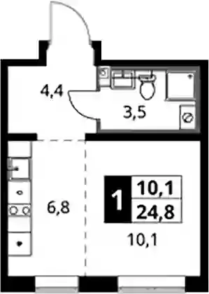 Студия, 24.8 м², 10 эт. в ЖК 1-й Южный Корпус 10