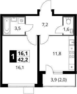 14 963 520 ₽1-к.квартира, 39.7 м², 6 эт.