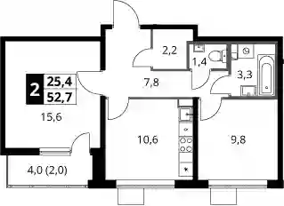 12 420 550 ₽2-к.квартира, 51.2 м², 6 эт.