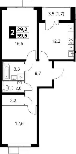 19 839 040 ₽2-к.квартира, 58.4 м², 9 эт.