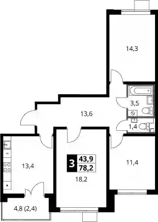18 188 518 ₽3-к.квартира, 81.3 м², 3 эт.
