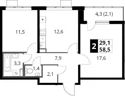 12 458 824 ₽2-к.квартира, 57.8 м², 15 эт.