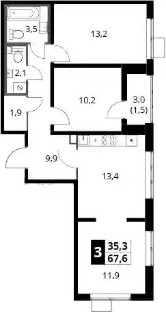 13 153 898 ₽3-к.квартира, 60.3 м², 23 эт.