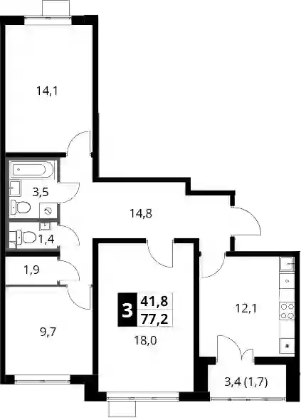 18 429 440 ₽3-к.квартира, 77.4 м², 17 эт.