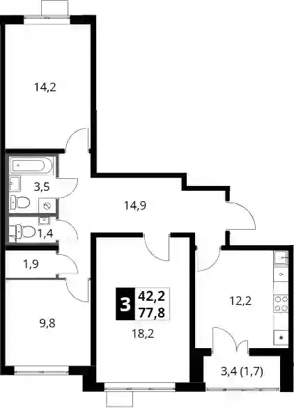 18 429 440 ₽3-к.квартира, 77.4 м², 17 эт.