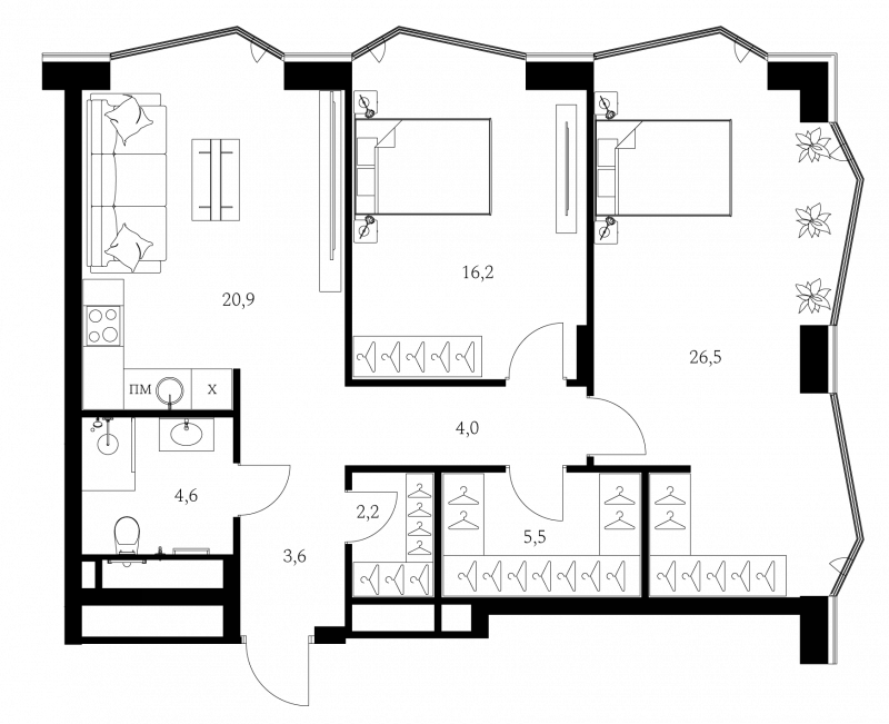 99 988 020 ₽3-к.квартира, 83.7 м², 6 эт.
