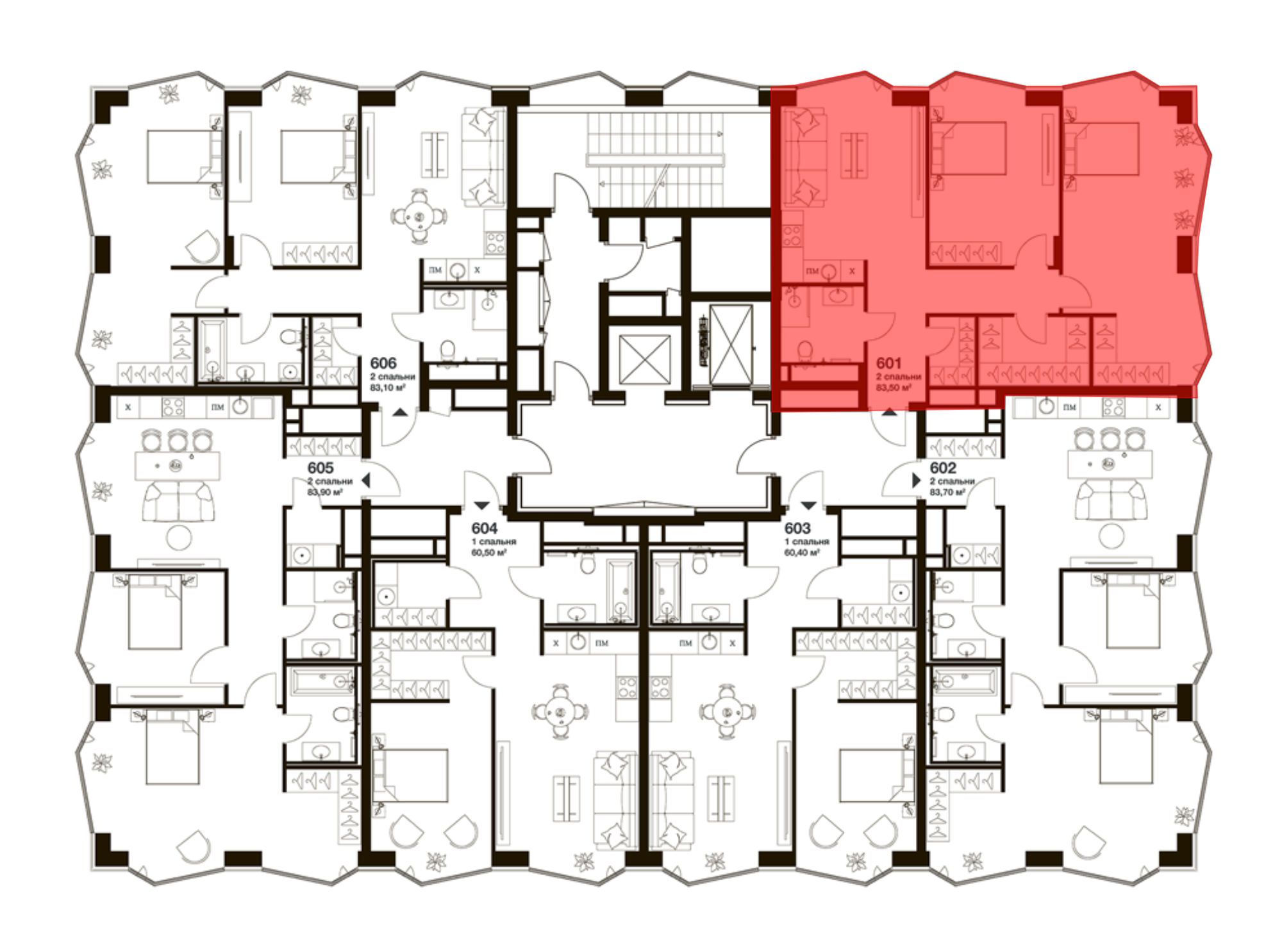 3-к.квартира, 83.5 м², 6 эт. в ЖК A. Residence Корпус А2