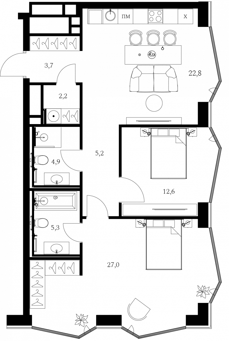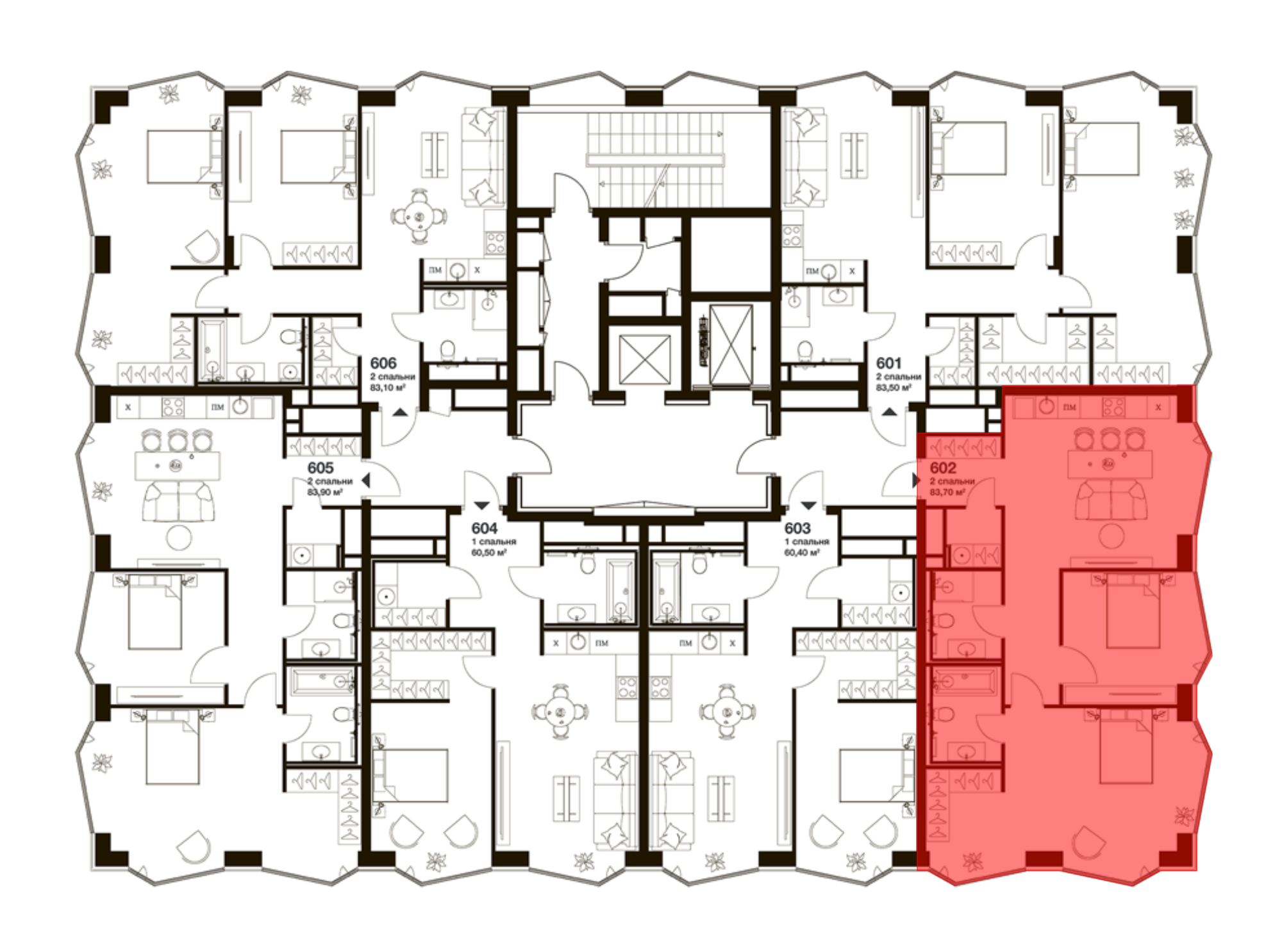 3-к.квартира, 83.7 м², 6 эт. в ЖК A. Residence Корпус А2