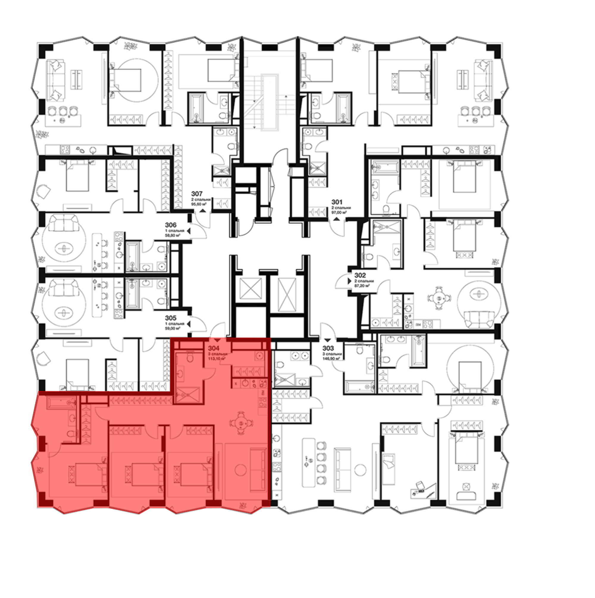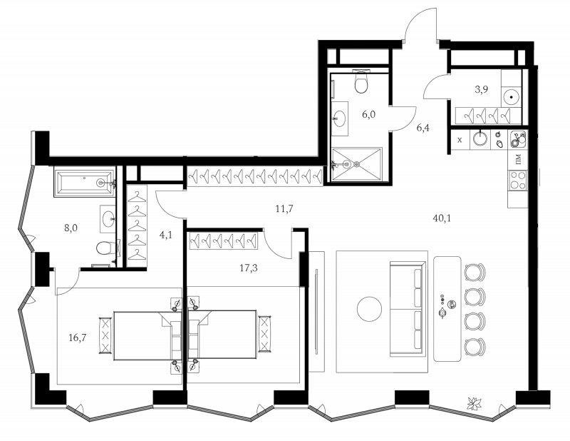 3-к.квартира, 114.2 м², 5 эт. в ЖК A. Residence Корпус А3