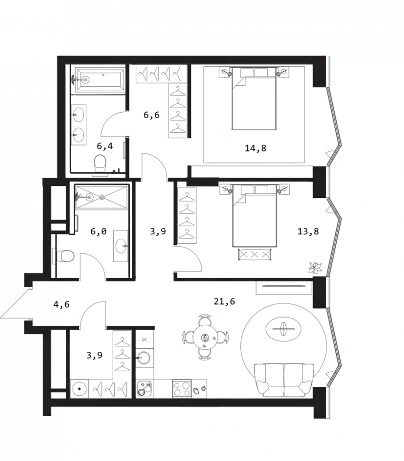 В проекте предлагаются премиальные апартаменты с 1–3 спальнями, а также пентхаусы с террасами и дровяными каминами. Все помещения имеют панорамные окна, в ряде планировок предусмотрены окна в ванных комнатах. Высота потолков варьируется от 2,95 до 3,25 м. Отделка выполнена в формате whitebox: стяжка с шумоизоляцией, оштукатуренные и зашпаклеванные стены, потолок из гипсокартона, проведена электрика, водоснабжение, отопление, установлены подрозетники и фанкойлы. Возможен дозаказ дизайнерской чистовой отделки.