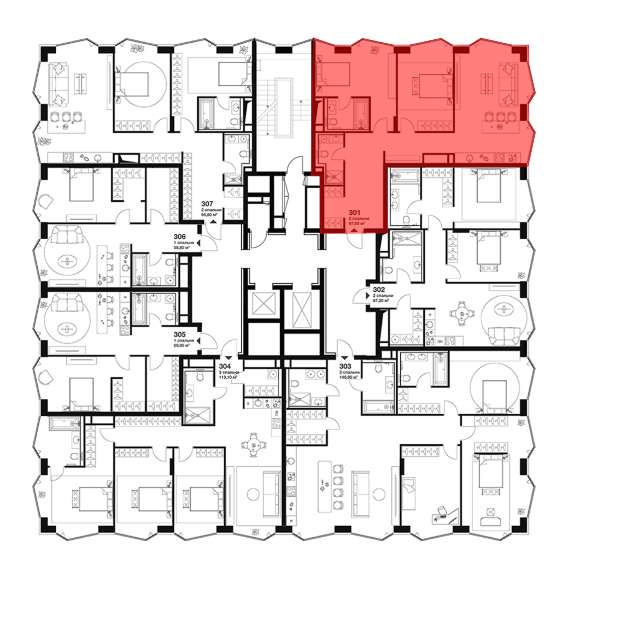 3-к.квартира, 97 м², 6 эт. в ЖК A. Residence Корпус А3