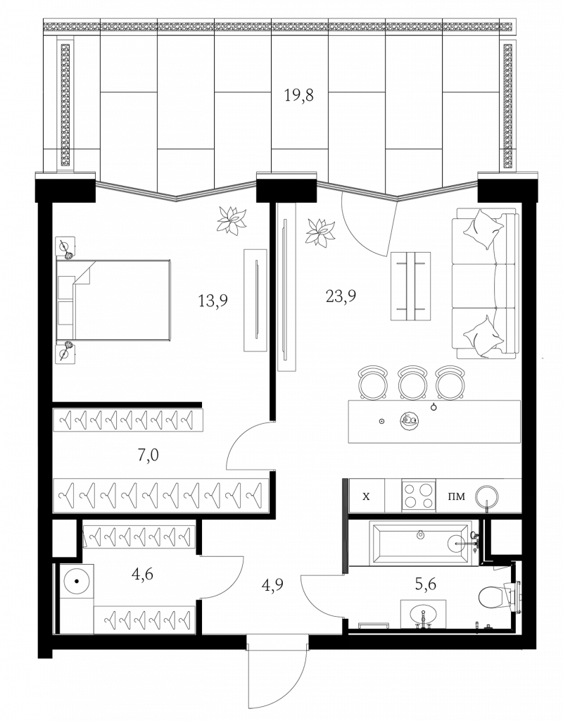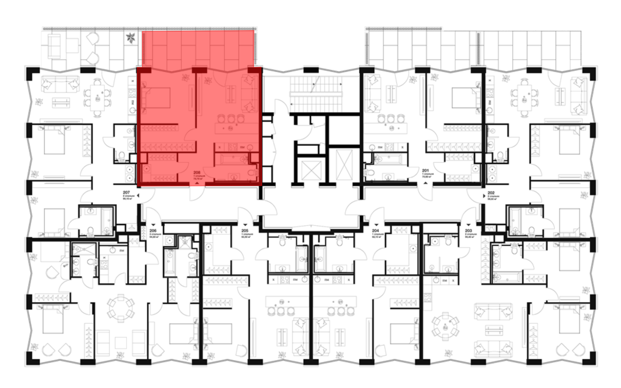 В проекте предлагаются премиальные апартаменты с 1–3 спальнями, а также пентхаусы с террасами и дровяными каминами. Все помещения имеют панорамные окна, в ряде планировок предусмотрены окна в ванных комнатах. Высота потолков варьируется от 2,95 до 3,25 м. Отделка выполнена в формате whitebox: стяжка с шумоизоляцией, оштукатуренные и зашпаклеванные стены, потолок из гипсокартона, проведена электрика, водоснабжение, отопление, установлены подрозетники и фанкойлы. Возможен дозаказ дизайнерской чистовой отделки.