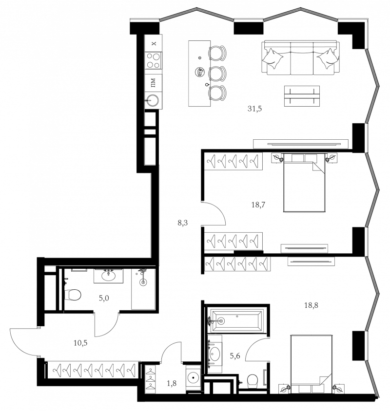 125 425 000 ₽3-к.квартира, 85.7 м², 8 эт.