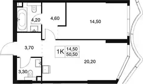 1-к.квартира, 50.6 м², 33 эт. в ЖК А22 Корпус 1