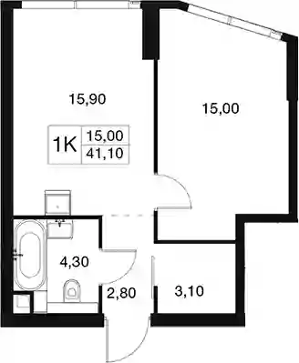 1-к.квартира, 41.1 м², 15 эт. в ЖК А22 Корпус 1