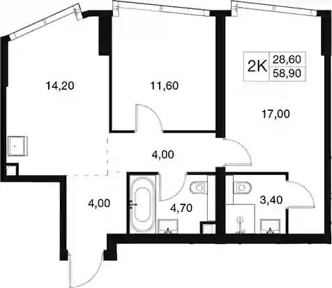2-к.квартира, 58.9 м², 17 эт. в ЖК А22 Корпус 1
