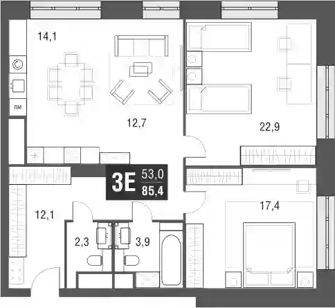 В небоскребе 1216 квартир, из которых 910 студий. Размер лотов варьируется от 19 до 105 кв.м, высота потолков в них составляет 3,3 м. Каждая квартира имеет возможность оснащения системой «Умный дом», которая позволяет управлять бытовой техникой и приборами по Wi-Fi через мобильное приложение.