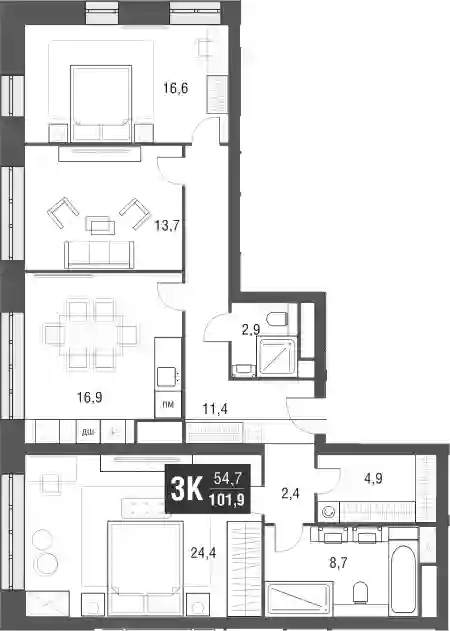 В небоскребе 1216 квартир, из которых 910 студий. Размер лотов варьируется от 19 до 105 кв.м, высота потолков в них составляет 3,3 м. Каждая квартира имеет возможность оснащения системой «Умный дом», которая позволяет управлять бытовой техникой и приборами по Wi-Fi через мобильное приложение.