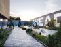 «AHEAD» — это авторский проект высотой в 17 этажей от бюро «Цимайло Ляшенко и Партнеры». Нижняя часть фасада здания имеет строгую и регулярную сетку из металлических ламелей. Верхняя часть имеет более живую структуру: пластина разделена на квадратные ячейки, каждая из которых — это отдельное панорамное окно. Все ячейки повернуты в разные стороны друг от друга, что создает мерцающий эффект за счет солнечных бликов и преломления света. В проекте предусмотрены постаматы для курьерской доставки, велопарковка, снижение уровня светового загрязнения с ориентацией на циркадные ритмы, умный дисплей в лифтах с информацией о локальных объектах инфраструктуры, мониторингом транспортной ситуации и качества среды.