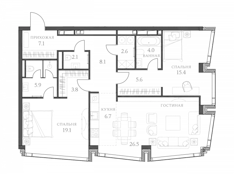 3-к.квартира, 108.4 м², 12 эт. в ЖК AHEAD Корпус 1