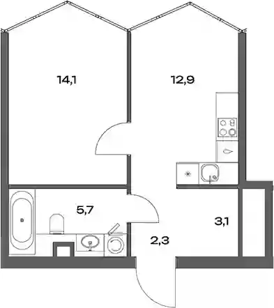 2-к.квартира, 38.1 м², 29 эт. в ЖК Акценты Корпус 14