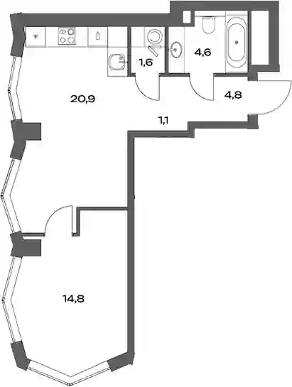 2-к.квартира, 47.8 м², 21 эт. в ЖК Акценты Корпус 14