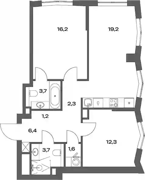 3-к.квартира, 66.6 м², 10 эт. в ЖК Акценты Корпус 14