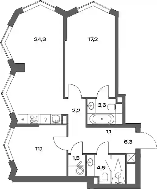 В проекте представлено широкое разнообразие функциональных планировочных решений. В квартирах высокие потолки от 2,85 метра, увеличенные и панорамные окна. Можно выбрать квартиру с чистовой отделкой, отделкой white box или без отделки.