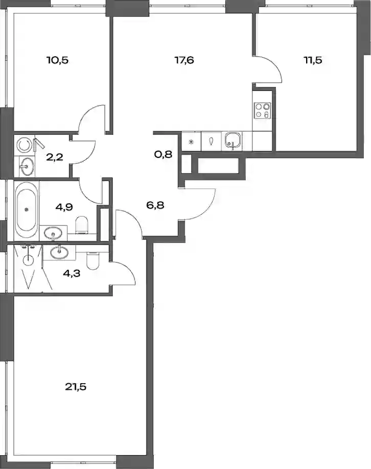 4-к.квартира, 80.1 м², 8 эт. в ЖК Акценты Корпус 15